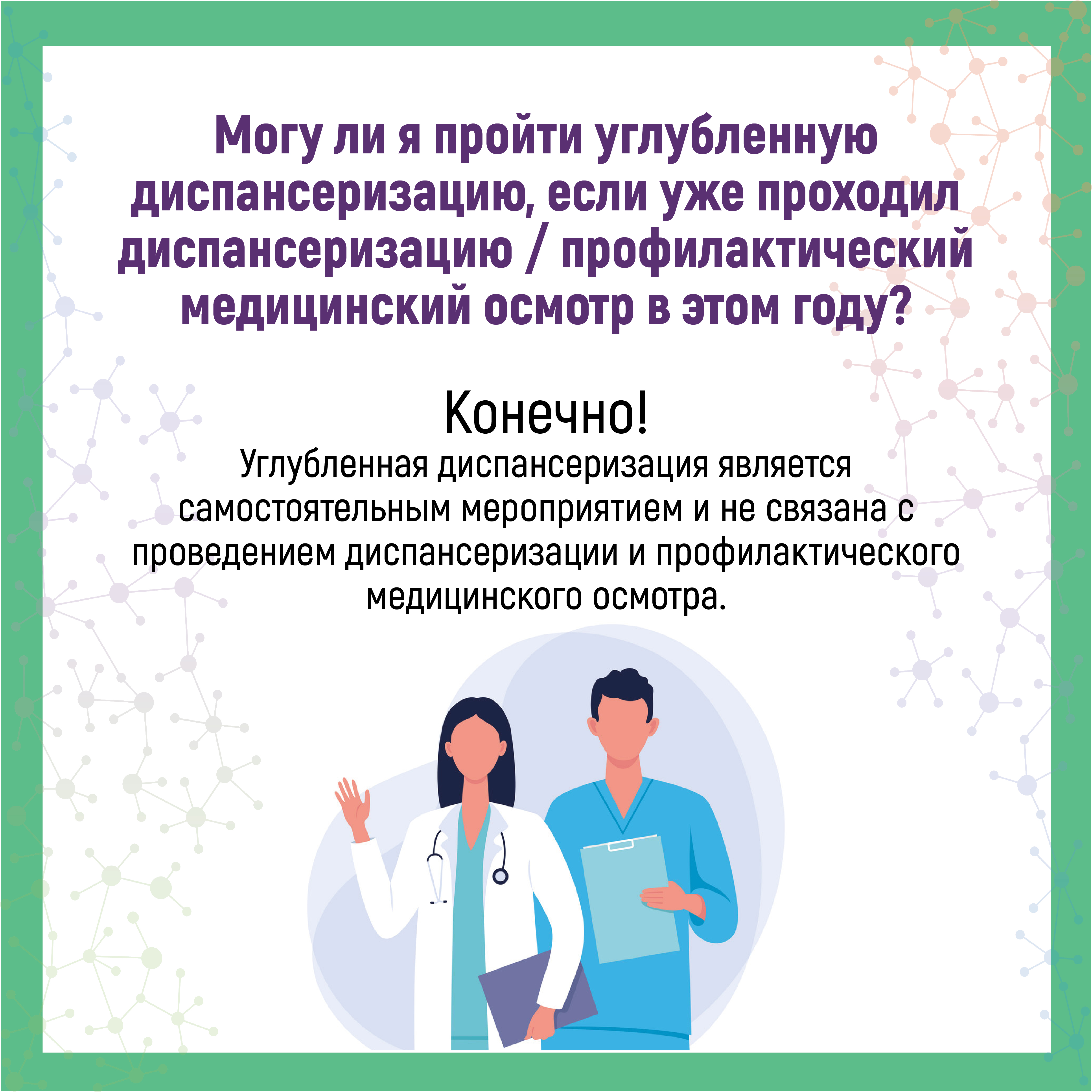 При необходимости прохождения исследований определенных 2 этапом углубленной диспансеризации, с Вами также будет согласовано время, дата обследования и наименование медицинской организации, проводящей данное обследование.
